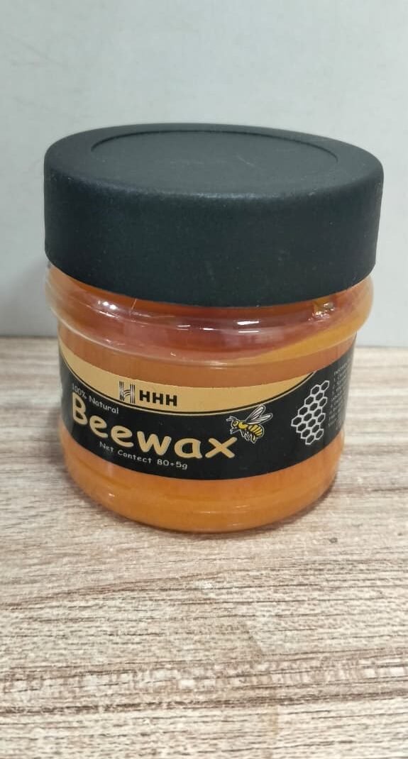 Bee wax furniture polish. It is used for cleaning, polishing, and protecting wooden surfaces, such as tables, chairs, and floor